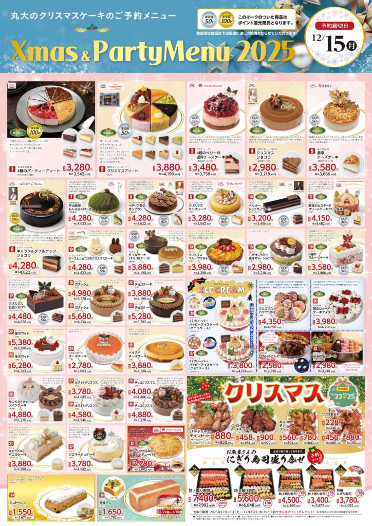 今年もクリスマスケーキの予約を丸大各店で受け付けております。