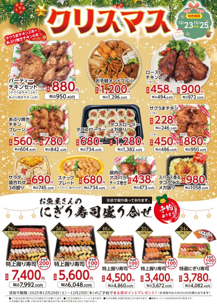 チキンとお寿司の予約もおすすめです!